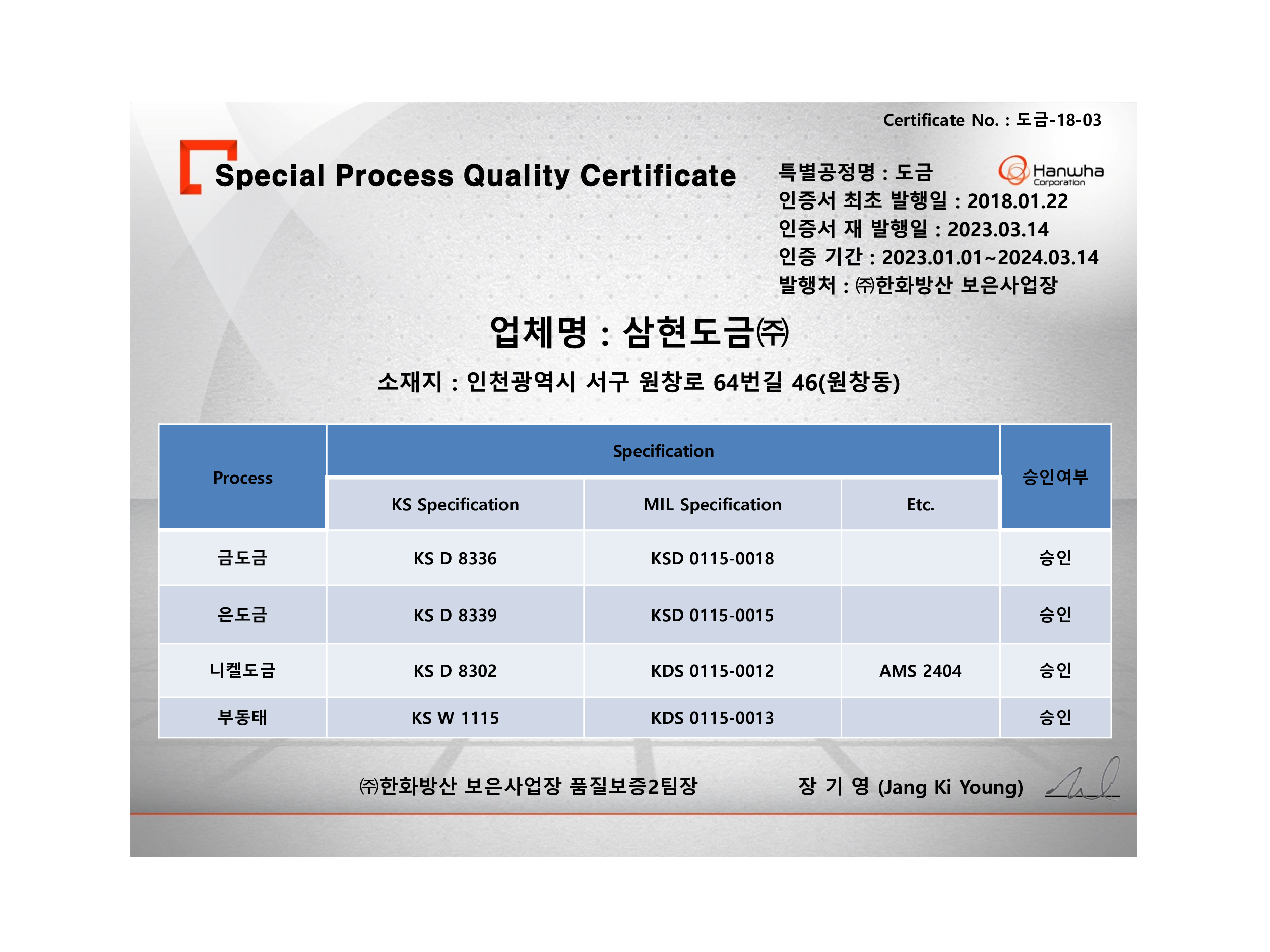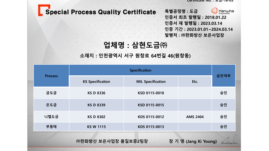 저희 삼현도금은 고객만족과 환경 보전을 위해 최선을 다하고 고유의 기술과 지속적인 연구개발을 통하여 신회받고 더불어 함께 발전하는 진취적인 회사, 사원모두가 혁신적이고 창조적인 도전의식을 갖고 이를 긍지로 여기는 열린 회사가 되겠습니다.
